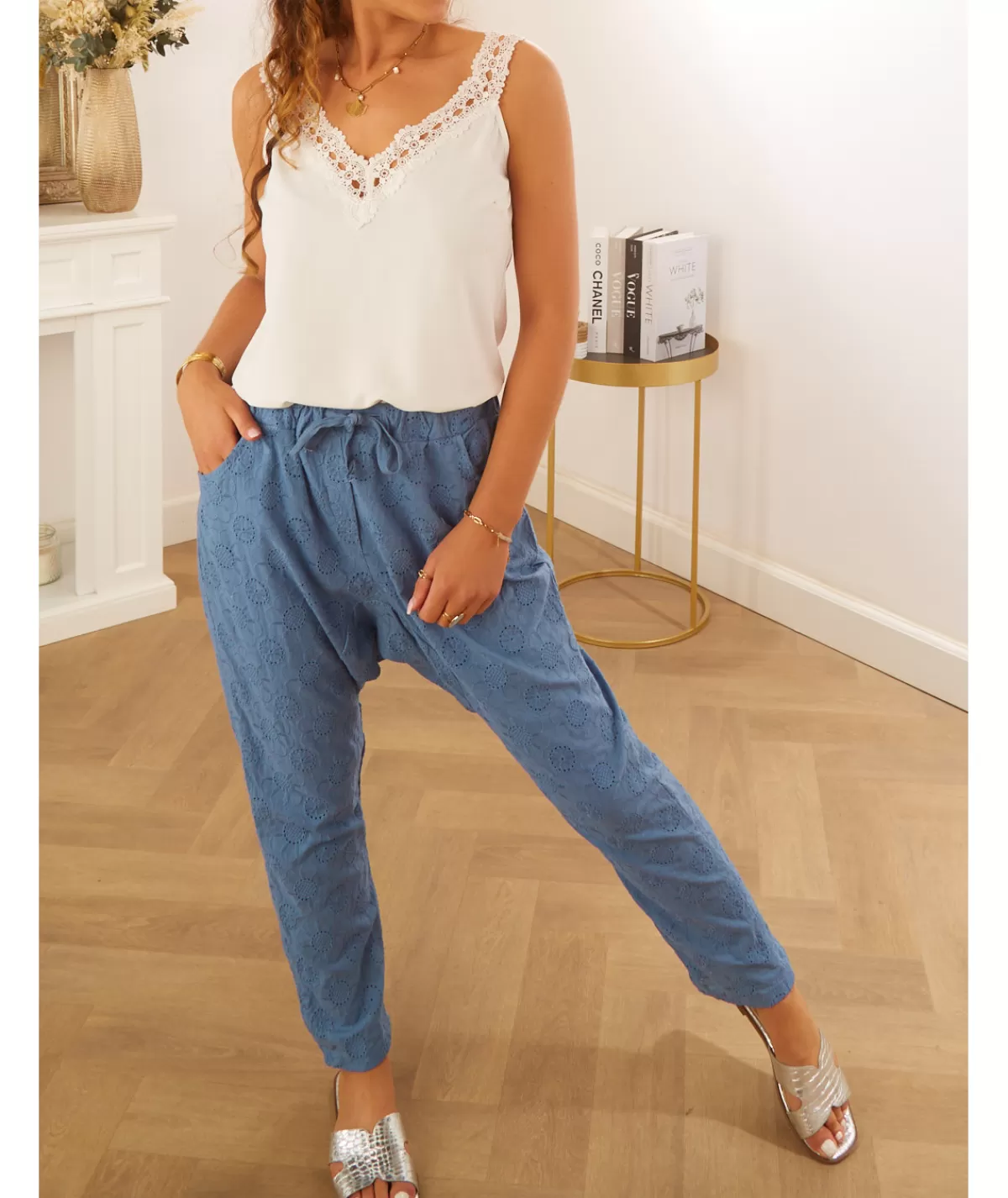 Fiche techniqueCollectionPrintemps / EtéTaille du mannequin1m66Lavage30°Entrejambes64 cmTaille unique34 / 42Compositi…