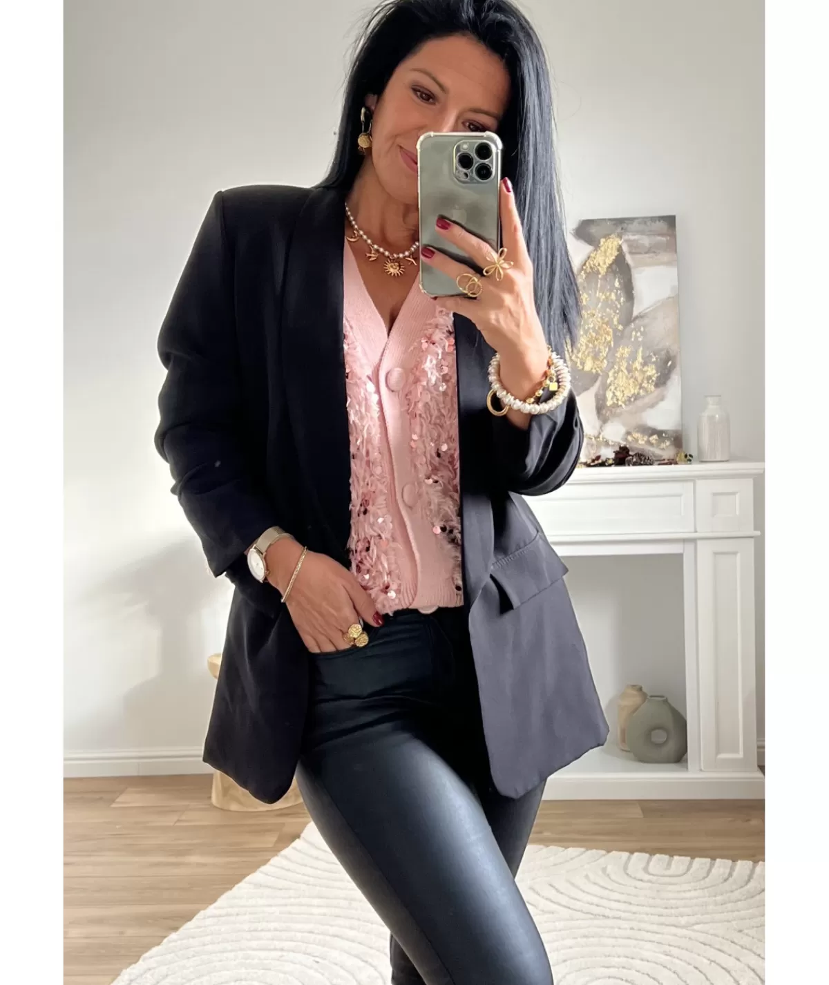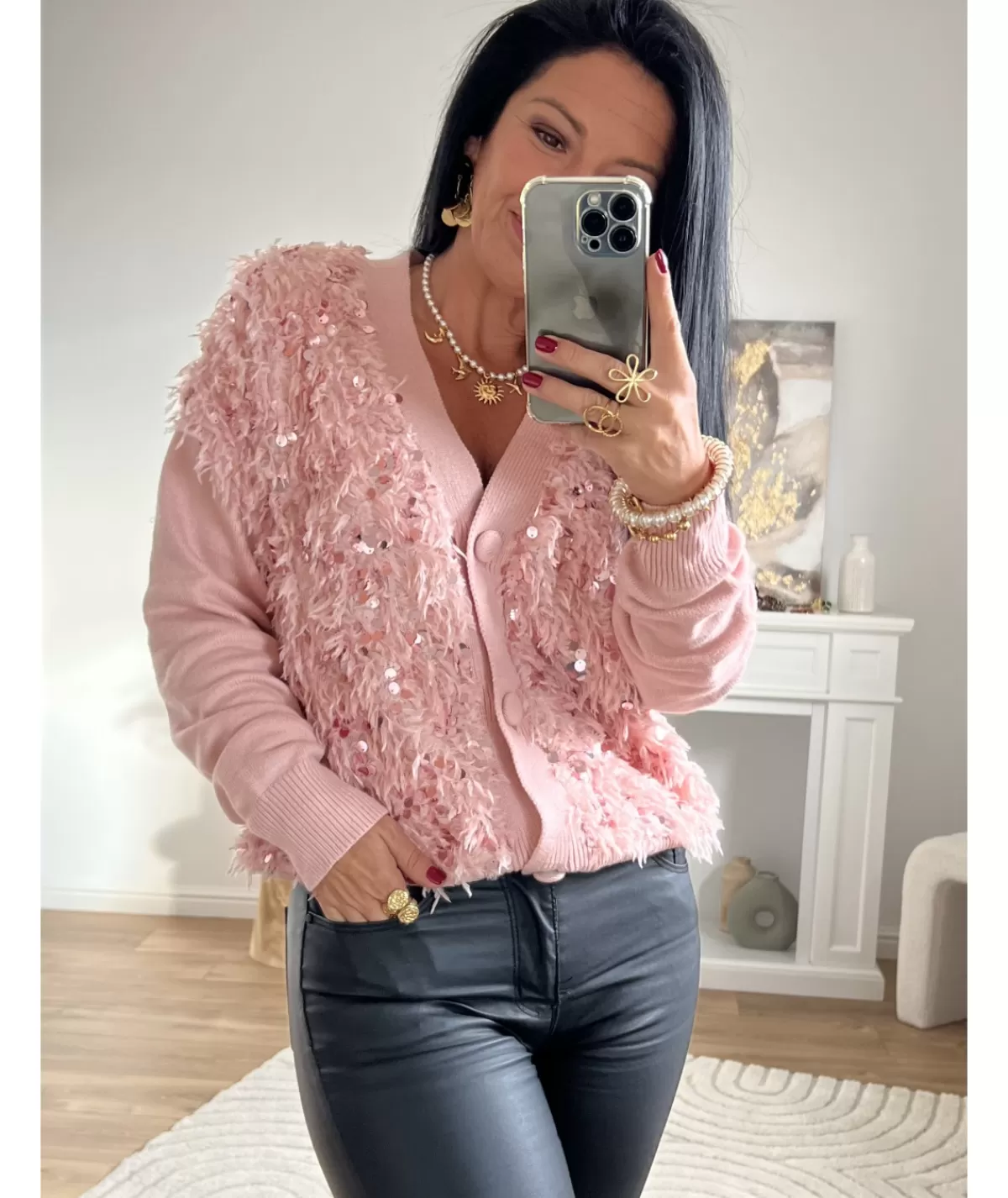 Fiche techniqueCollectionAutomne / HiverTaille du mannequin1m56Lavage30°Dos55 cmManches53 cmTaille unique34 / 42Compos…