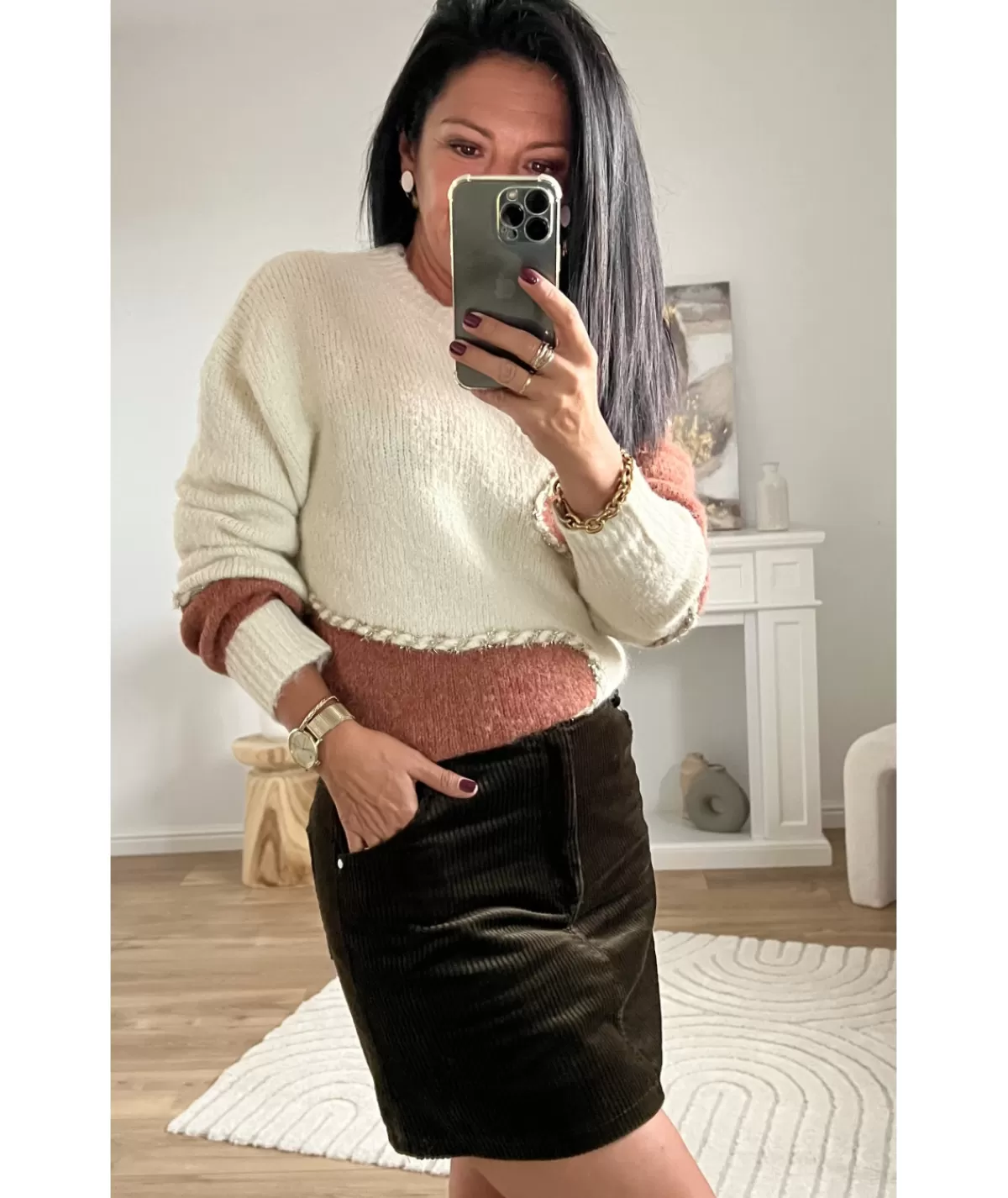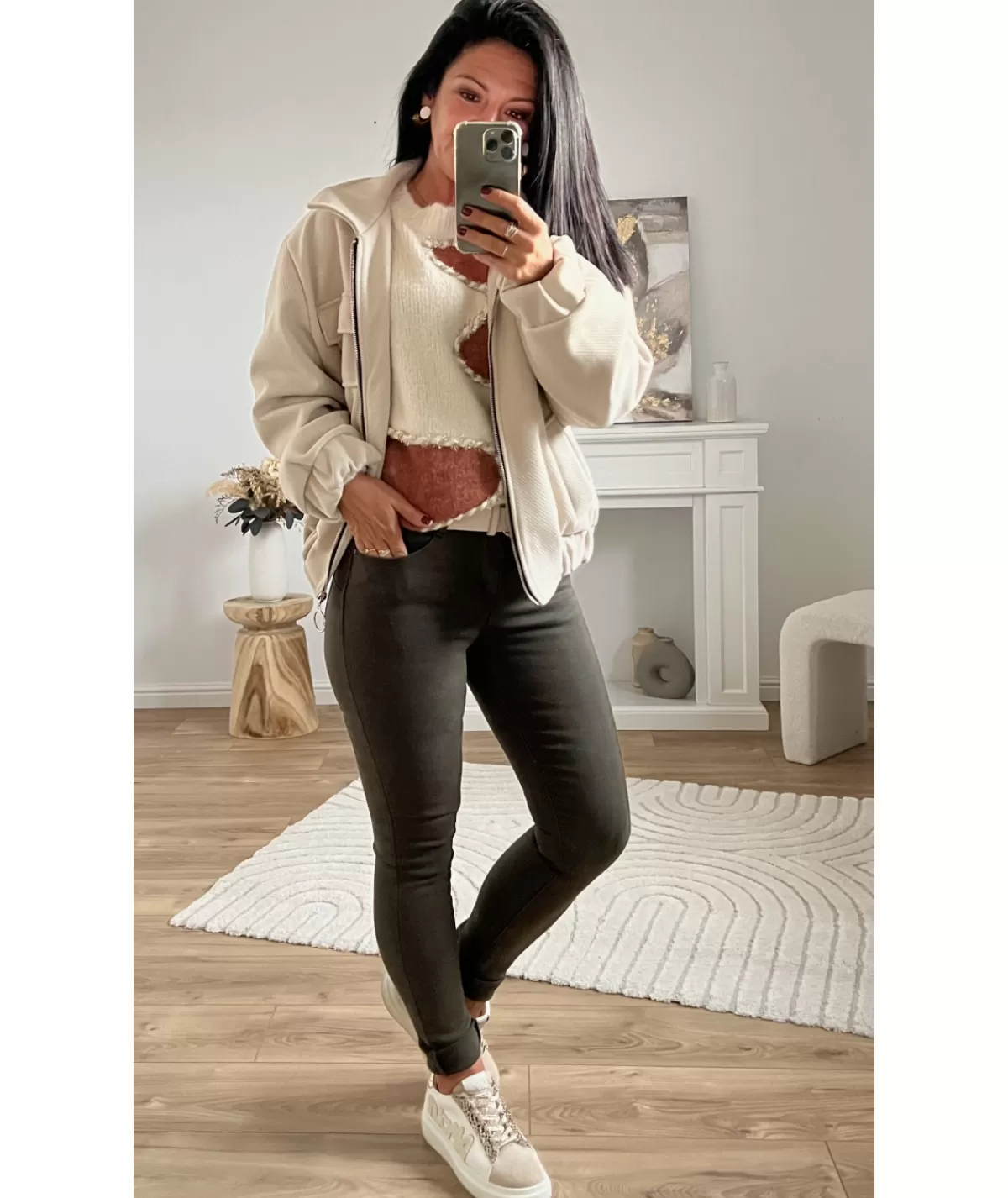 Fiche techniqueCollectionAutomne / HiverTaille du mannequin1m56Lavage30°Dos57 cmManches67 cmTaille unique34 / 42Compos…