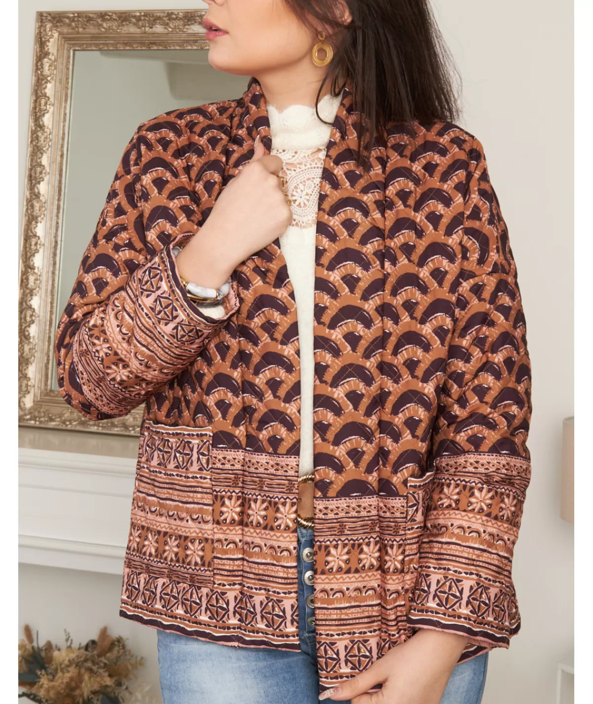 Fiche techniqueCollectionAutomne / HiverTaille du mannequin1m69Lavage30°Dos66 cmManches43 cmTaille unique34 / 42Compos…