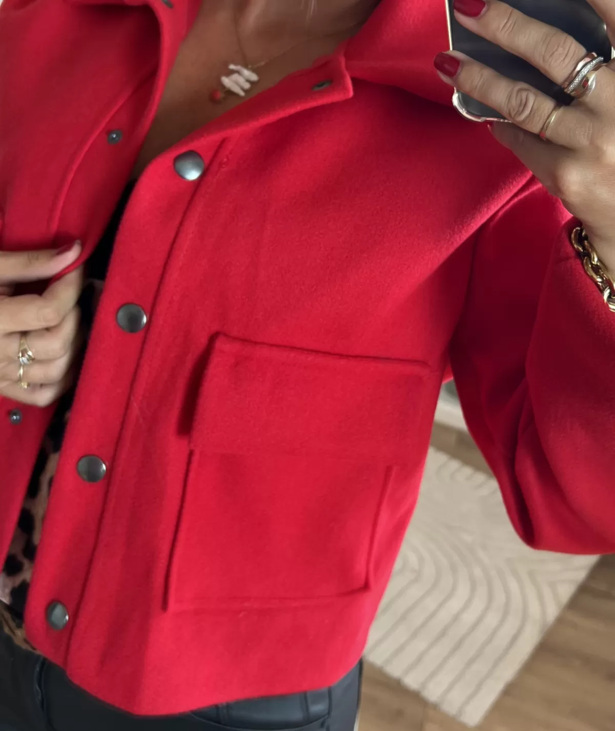 Fiche techniqueCollectionAutomne / HiverTaille du mannequin1m56Lavage30°Dos44cmManches58 cmTaille unique34 / 42Composi…